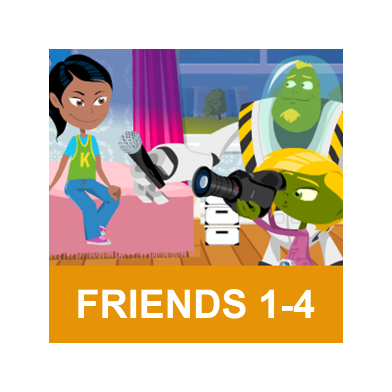 Friends i engelsk for 1.-4. trinn stimulerer elevene til å ta i bruk språket fra første stund godt hjulpet av gjennomgangsfigurene Alex, Lucy, Kim m.fl.